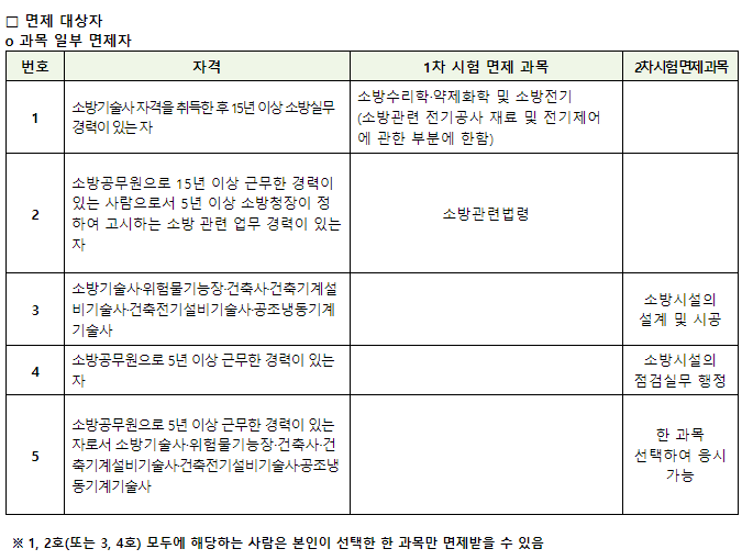 소방관련 실무경력이 있는 분들은 일부과목을 면제 받을 수도 있습니다.