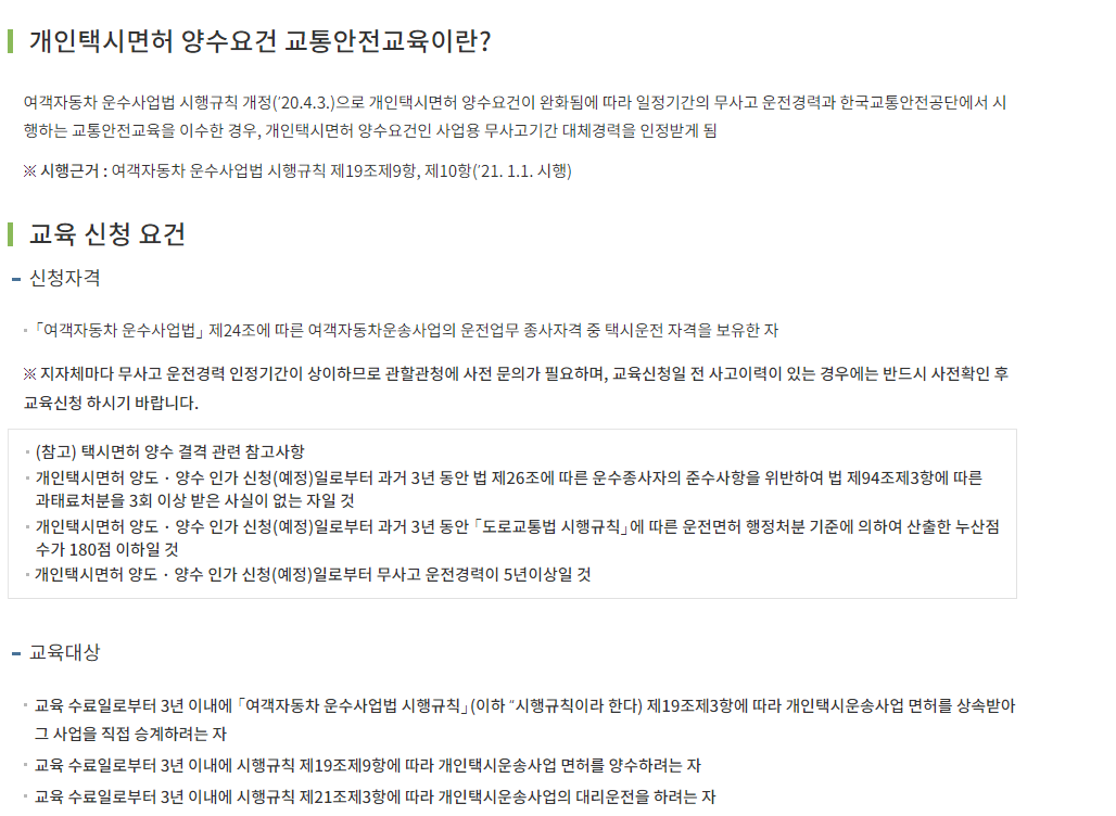 다만 개인택시 양수교육이 4박 5일로 꽤나 길게 진행되고 이 양수교육을 받는 것이 조금은 어렵다는 것에 문제가 있겠습니다.