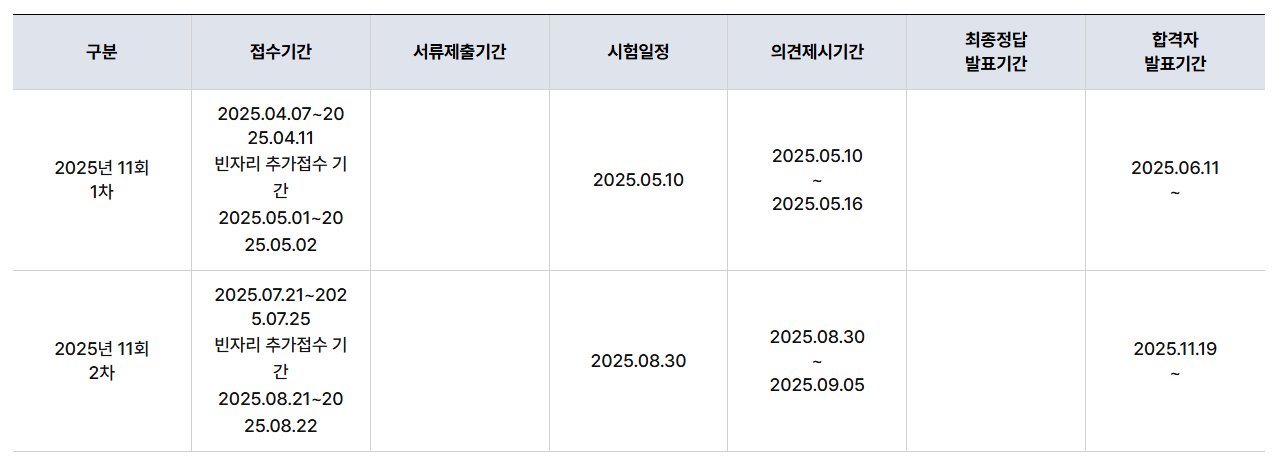 하지만 현실적으로 지금 시점에서 2025년 손해평가사 시험을 준비하는 것은 쉽지 않아 보입니다. 2025년 1차 시험은 5월에 시행되기 때문입니다. 1차 시험 합격은 가능할 수 있지만, 난이도가 높기로 정평이 난 2차 시험까지 동차 합격하는 것은 매우 어려운 도전이 될 것입니다. 2025년 시험을 기준으로 한다면 1차 시험은 5월 10일이며, 2차시험은 8월 30일입니다.