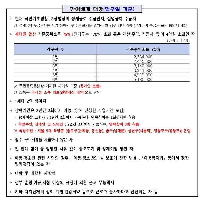 그 외에 대학생이나, 건강쇠약 등도 참여배제 대상이 되니 참고하시고 위 내용을 자세히 읽어주시기 바랍니다.